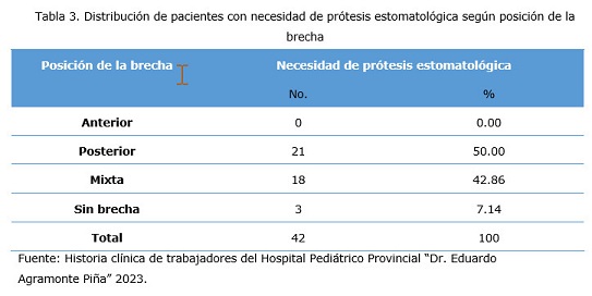 Objective: To identify the need for dental prostheses in workers at the Provincial Pediatric Hospital “Eduardo Agramonte Piña” in Camagüey during the year 2023.